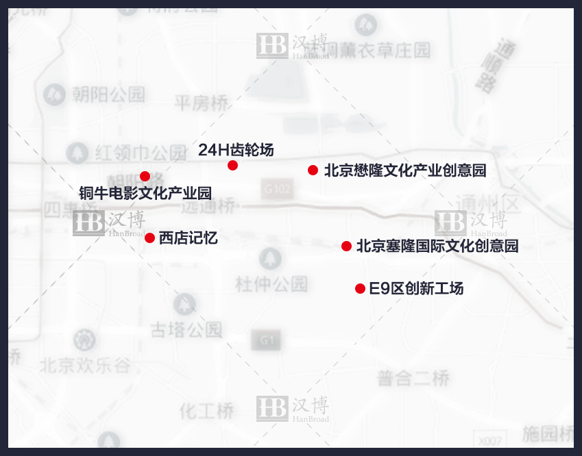 西店记忆→铜牛电影文化产业园→24H齿轮场品牌创业文化园→北京懋隆文化产业创意园、北京塞隆国际文化创意园→E9区创新工场