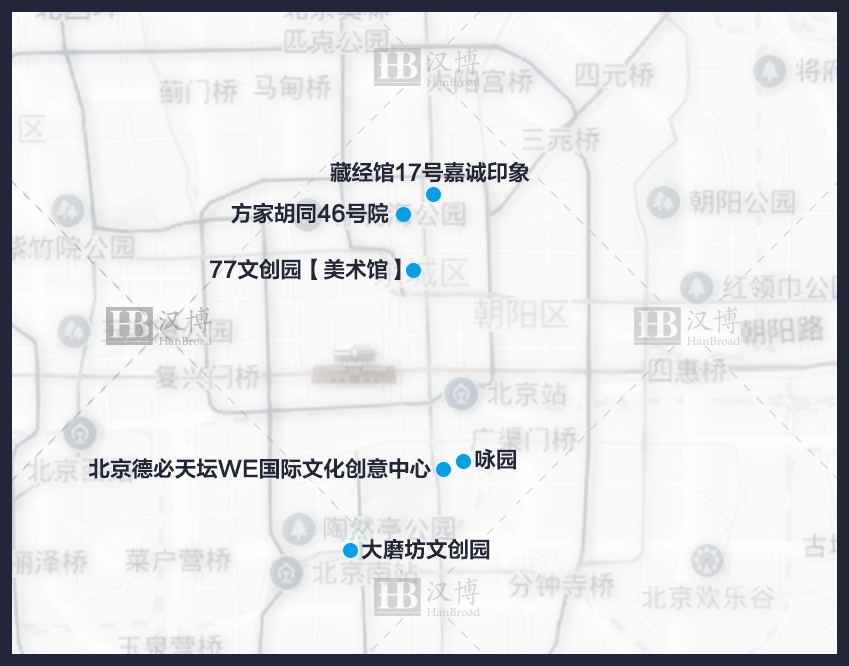 藏经馆17号嘉诚印象→方家胡同46号院→77文创园【美术馆】→北京德必天坛WE国际文化创意中心→咏园→大磨坊文创园