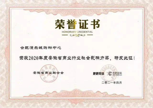 继优异的市场反馈之后,合肥漫乐城也获得了合肥市、区政府的多项荣誉奖励。