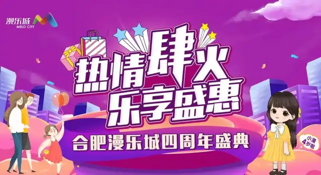 本次合肥漫乐城四周年除了精彩的庆生盛典外,还有进店送福袋、华服霓裳巡游、整点抽大奖、机甲战士巡游、梦幻童话剧场等丰富多彩的活动。1月22日至23日连续2天的生日狂趴,精彩继续,欢乐不停,为广大市民带来“热情肆火”的欢乐盛宴!