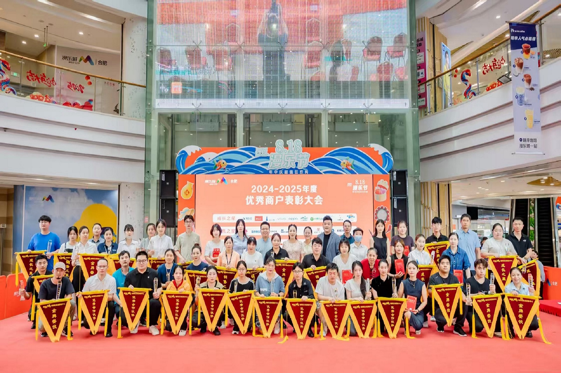 良好的购物体验离不开品牌商户的支持。随后,2024-2025年度优秀商户表彰大会隆重举办,成长之星、销售之星、优秀店长、金牌餐饮、优秀合作伙伴等获奖商户代表纷纷上台,彰显合肥漫乐城携手商户持续共赢的决心。一路相伴,共谋发展,树立模范,展望未来。