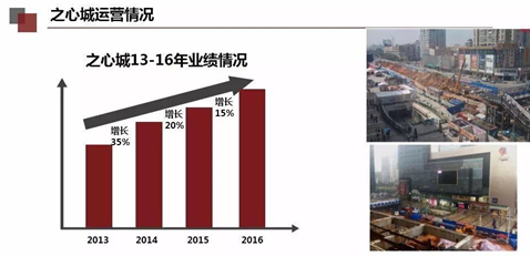 合肥之心城是汉博商业整租项目,地上7层,地下3层,是集购物、美食、娱乐为一体的一站式消费体验商业综合体。项目于2012年10月1日正式开业,在合肥激烈的市场环境下,业绩逐年提升,截至目前,日均销售已超300万,客流量日均6万人次,租金收缴率高达98%。