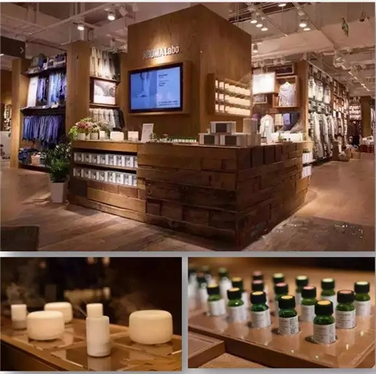 “MUJI to GO”一旁的L型柜台,是首次进入中国的AROMA Labo香薰工坊,能DIY属于自己独一无二的香薰,以及买到不同香味的精油产品。