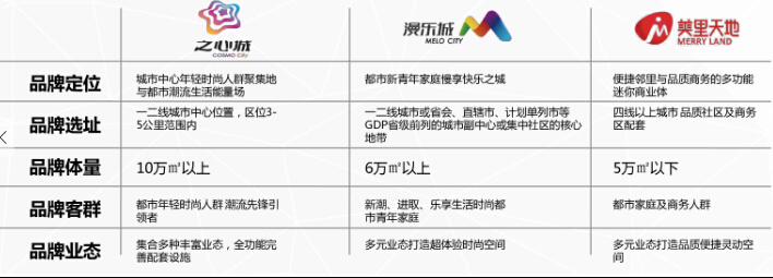 值得注意的是,具体到选择何类项目服务与运营,汉博商业也有一定的考虑。在选择上,其拥有严格的标准。比如,汉博商业自有的定制品牌“之心城”、“漫乐城”和“美里天地”就有明确的选址标准,并且编撰成册。这其中,漫乐城一般选择二线城市住宅密集区,之心城则一般在城市核心区,美里天地则主要在社区。